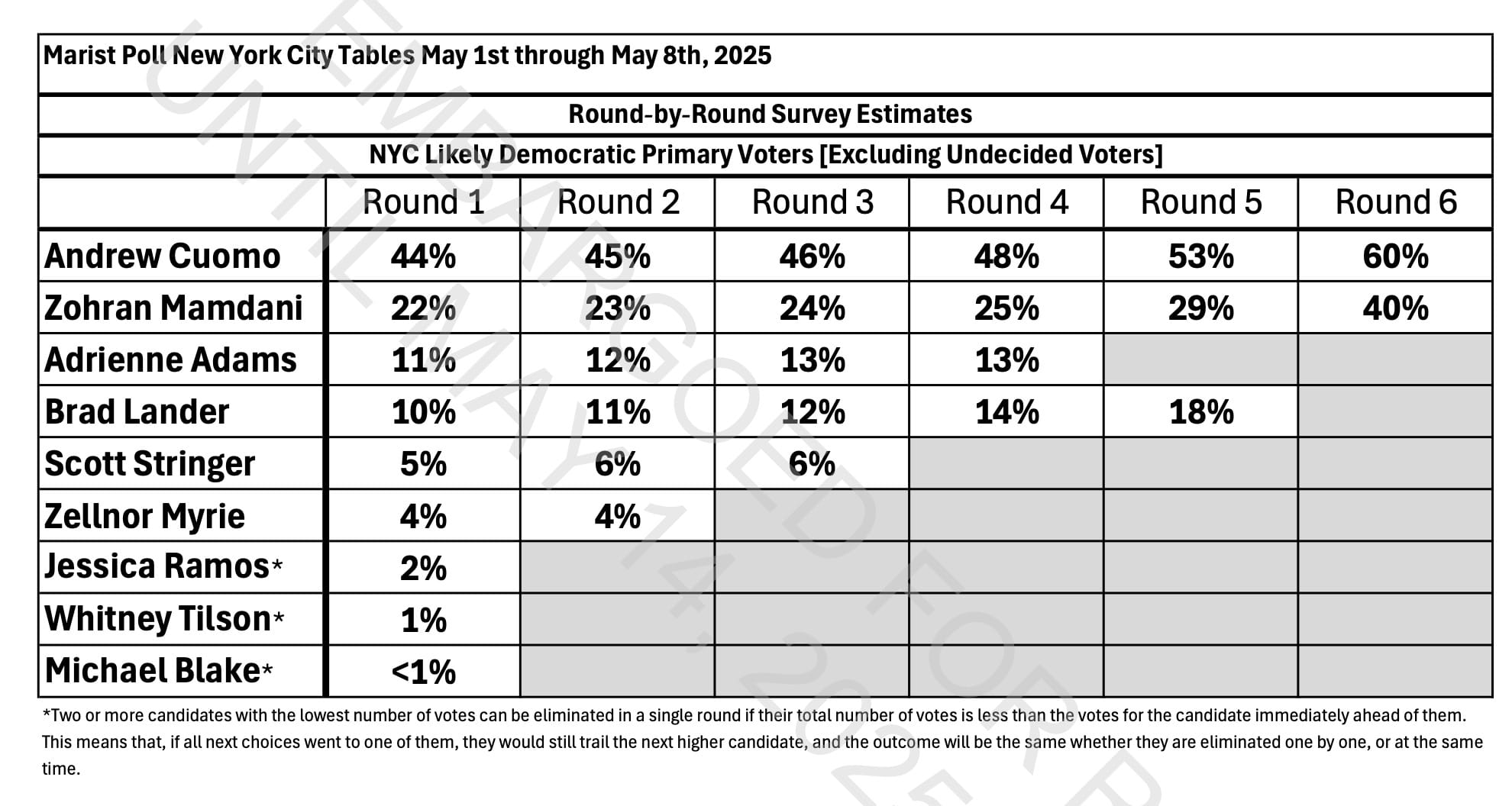 A poll from March found that Cuomo had a 96% name recognition, over double what Zohran measured at the time at 44%. (On another note, this meant Zohran was polling in 2nd place while not even being known by half the voters: that's wild!)