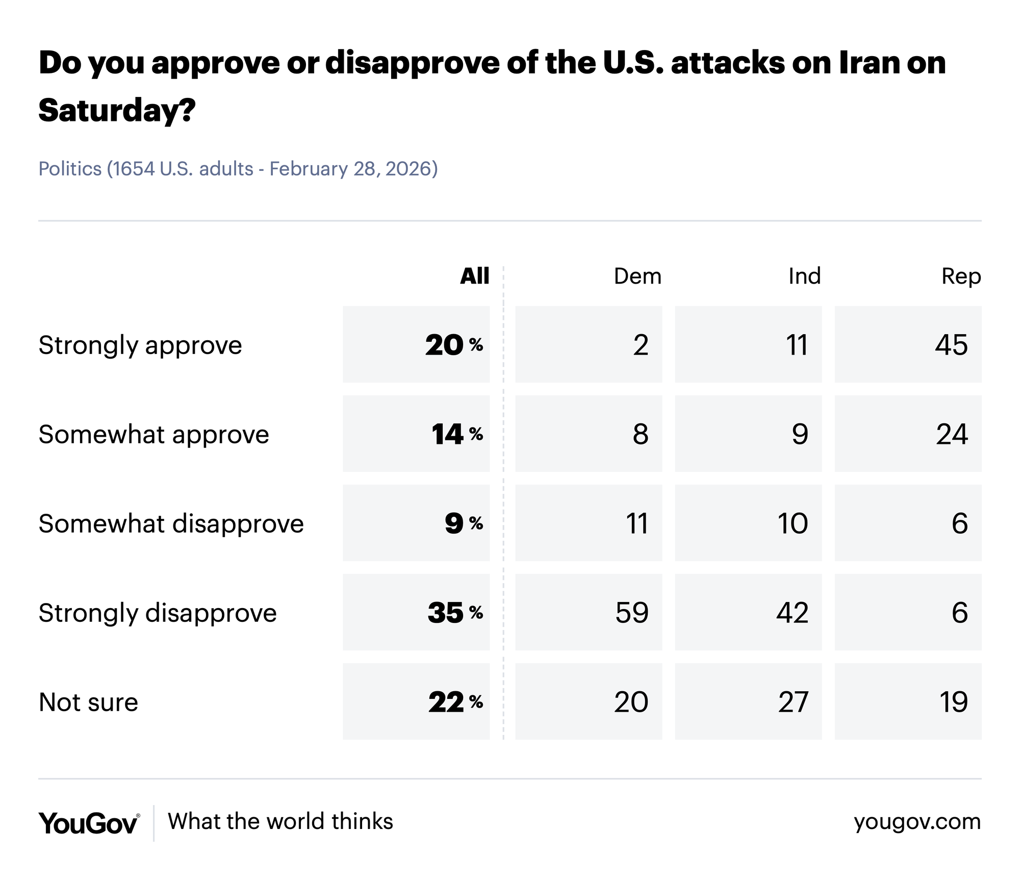YouGov Poll, Conducted From Feb 28, 2026 (1,654 U.S. Adult Citizens)