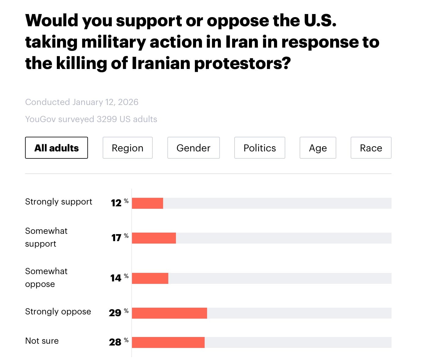 YouGov Survey: January 12th 2026 (3,299 US Adults)
