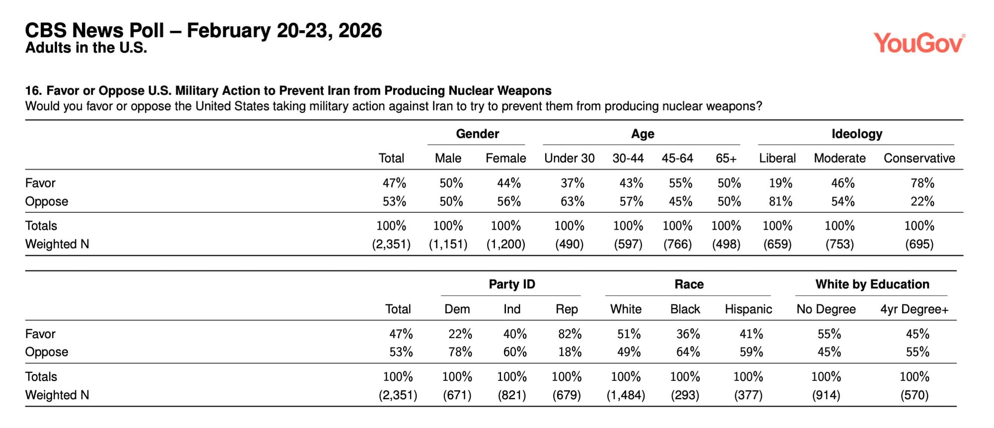 CBS News/YouGov Poll, Conducted Feb 20-23, 2,381 Adults